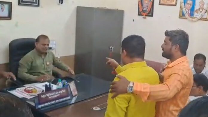 ನಗರಸಭೆ ಕಚೇರಿಯಲ್ಲಿ ಸ್ಥಾಯಿ ಸಮಿತಿ ಅಧ್ಯಕ್ಷ ಅನಿಲ್ ಅಬ್ಬಿಗೇರಿ ಅವರ ಕಚೇರಿಯಲ್ಲಿ ಜಗಳ ನಡೆದಿದೆ. ಅಬ್ಬಿಗೇರಿ ಮತ್ತು ಬಿಜೆಪಿ ಸದಸ್ಯೆ ವಿಜಯಲಕ್ಷ್ಮೀ ಅವರ ಪತಿ ಶಶಿಧರ್ ದಿಂಡೂರ ನಡುವೆ ಗಲಾಟೆ ನಡೆಸಿದ್ದು, ಇಬ್ಬರೂ ಪರಸ್ಪರ ಏಕವಚನದಲ್ಲಿ ನಿಂದಿಸಿದ್ದಾರೆ.
