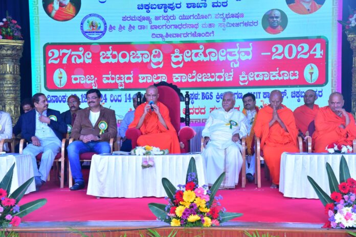 ಚಿಕ್ಕಬಳ್ಳಾಪುರ ನಗರ ಹೊರವಲಯದ ಎಸ್.ಜೆ.ಸಿ. ತಾಂತ್ರಿಕ ಮಹಾವಿದ್ಯಾಲಯದಲ್ಲಿ ಶುಕ್ರವಾರ ಆಯೋಜಿಸಿದ್ದ 27ನೇ ವರ್ಷದ ರಾಜ್ಯಮಟ್ಟದ ಚುಂಚಾದ್ರಿ ಕ್ರೀಡೋತ್ಸವದ ವೇದಿಕೆ ಕಾರ್ಯಕ್ರಮಕ್ಕೆ ಚಾಲನೆ ನೀಡಿ ಅವರು ಮಾತನಾಡಿದರು.