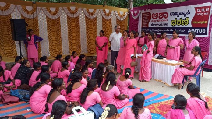 ನಾನಾ ಬೇಡಿಕೆಗಳ ಈಡೇರಿಕೆಗೆ ಆಗ್ರಹಿಸಿ ಆಶಾ ಕಾರ್ಯಕರ್ತೆಯರ ಸಂಘವು ರಾಜ್ಯವ್ಯಾಪ್ತಿ ಎಲ್ಲ ಜಿಲ್ಲಾ ಕೇಂದ್ರಗಳಲ್ಲಿ ಅಹೋರಾತ್ರಿ ಪ್ರತಿಭಟನಾ ಧರಣಿ ಹಮ್ಮಿಕೊಂಡಿದೆ.