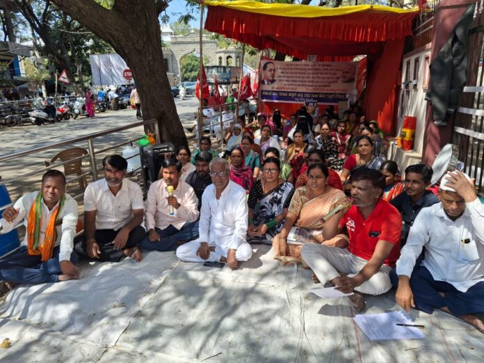 ಸೇವಾ ಭದ್ರತೆ ಒದಗಿಸುವುದು ಸೇರಿದಂತೆ ವಿವಿಧ ಬೇಡಿಕೆಗಳ ಈಡೇರಿಕೆಗೆ ಆಗ್ರಹಿಸಿ ಕರ್ನಾಟಕ ರಾಜ್ಯ ಹಾಸ್ಟೆಲ್ ಮತ್ತು ವಸತಿ ಶಾಲಾ ಹೊರಗುತ್ತಿಗೆ ನೌಕರರ ಸಂಘದ ವತಿಯಿಂದ ಕಲಬುರಗಿ ಜಿಲ್ಲಾಧಿಕಾರಿಗಳ ಕಚೇರಿ ಎದುರು 12 ದಿನಗಳಿಂದ ನಡೆಯುತ್ತಿರುವ ಅಹೋರಾತ್ರಿ ಧರಣಿ ಮುಂದುವರೆದಿದೆ.