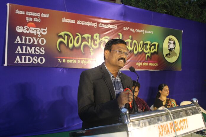 ನೇತಾಜಿ ಸುಭಾಷಚಂದ್ರ ಬೋಸ್ ಸ್ಮರಣ ಸಮಿತಿ, ಆವಿಷ್ಕಾರ ವೇದಿಕೆ, ಎಐಡಿಎಸ್ಓ, ಎಐಡಿವೈಓ, ಎಐಎಮ್ಎಸ್ಎಸ್ ಜಂಟಿಯಾಗಿ ಕಲಬುರಗಿ ನಗರದ ಕನ್ನಡ ಭವನದಲ್ಲಿ ಹಮ್ಮಿಕೊಂಡಿರುವ “ಸಾಂಸ್ಕೃತಿಕ ಜನೋತ್ಸವ” ಕಾರ್ಯಕ್ರಮದ ಎರಡನೇ ದಿನ ಅತಿಥಿಯಾಗಿ ಭಾಗವಹಿಸಿ ಅವರು ಮಾತನಾಡಿದರು.