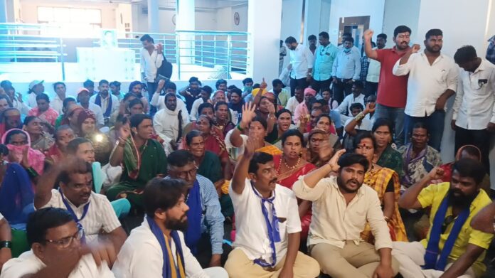 ಮಹಾನಗರ ಪಾಲಿಕೆ ಆಯುಕ್ತ ವಿಜಯಕುಮಾರ್ ಮೆಕ್ಕಳಕಿ ಅವರು ದಲಿತ ಮುಖಂಡರೊಂದಿಗೆ ಮಾತನಾಡಿ, ಪ್ರತಿಭಟನೆ ಮಾಡದಂತೆ ಮನವಿ ಮಾಡಿದರು.
