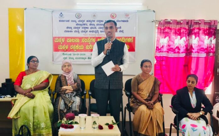 ಅವರು ಇಂದು ರಜತಾದ್ರಿಯ ಜಿಲ್ಲಾ ಸಂಪನ್ಮೂಲ ಕೇಂದ್ರದಲ್ಲಿ ಕರ್ನಾಟಕ ರಾಜ್ಯ ಮಕ್ಕಳ ಹಕ್ಕುಗಳ ರಕ್ಷಣಾ ಆಯೋಗ ಬೆಂಗಳೂರು, ಮಹಿಳಾ ಮತ್ತು ಮಕ್ಕಳ ಅಭಿವೃದ್ಧಿ ಇಲಾಖೆ, ಜಿಲ್ಲಾ ಮಕ್ಕಳ ರಕ್ಷಣಾ ಘಟಕ, ಮಕ್ಕಳ ಸಹಾಯವಾಣಿ ಉಡುಪಿ ಜಿಲ್ಲೆ, ಇವರ ಸಂಯುಕ್ತ ಆಶ್ರಯದಲ್ಲಿ ಮಕ್ಕಳ ಪಾಲನ ಸಂಸ್ಥೆಗಳ ಅಧಿಕಾರಿ ಹಾಗೂ ಸಿಬ್ಬಂದಿಗಳಿಗೆ ಮಕ್ಕಳ ರಕ್ಷಣೆಯ ಕುರಿತು ಅರಿವು ಕಾರ್ಯಕ್ರಮವನ್ನು ಉದ್ಘಾಟಿಸಿ ಅವರು ಮಾತನಾಡಿದರು.