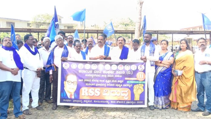 ಕರ್ನಾಟಕ ದಲಿತ ಸಂಘರ್ಷ ಸಮಿತಿ (ಅಂಬೇಡ್ಕರ್ವಾದ) ಉಡುಪಿ ಜಿಲ್ಲಾ ಸಮಿತಿ ವತಿಯಿಂದ ಉಡುಪಿ ಜಿಲ್ಲಾಧಿಕಾರಿ ಕಛೇರಿ ಮುಂಭಾಗದಲ್ಲಿ ಇಂದು ಆರ್ಎಸ್ಎಸ್ ವಿರುದ್ಧ ಪ್ರತಿಭಟನಾ ಸಭೆ ನಡೆಯಿತು.
