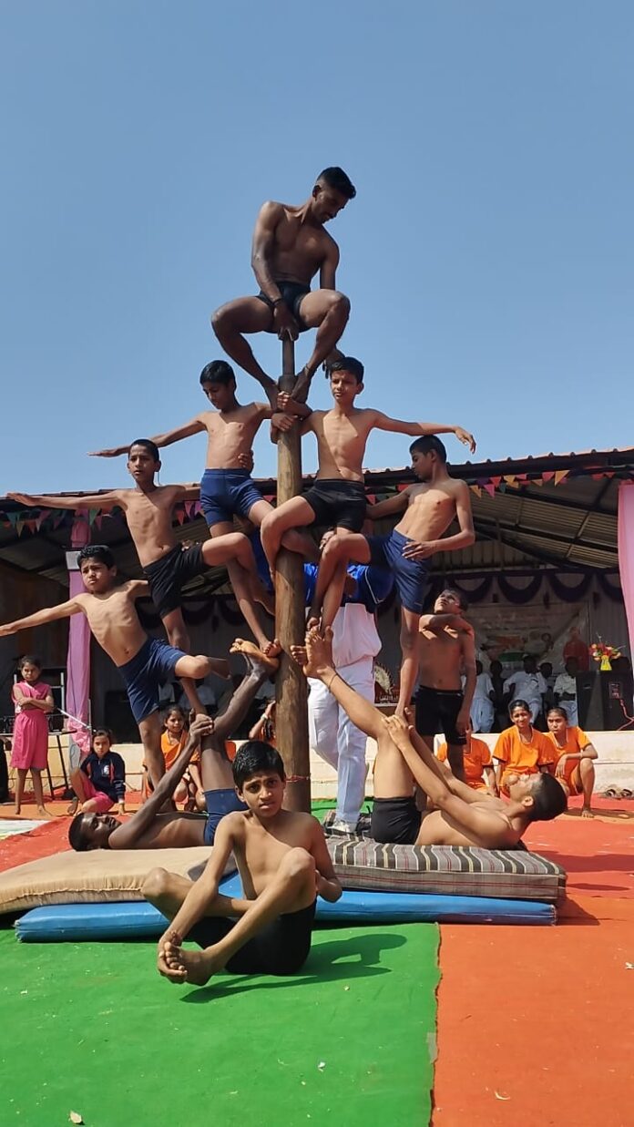 ಈ ಕ್ರೀಡೆಯಲ್ಲಿ ಪೋಲ್ ಮಲ್ಲಕಂಬ ಪ್ರದರ್ಶನ ಹಾಗೂ ರೋಪ ಮಲ್ಲಕಂಬದ ಆಟ, ಈ ಆಟಗಳಲ್ಲಿ ದಸರಂಗ, ಸಲಾಮಿ, ಹಾಲಾಸನ, ಭಜರಂಗಾಸನ, ಸಂಖ್ಯಾಸನ, ವೀರಭದ್ರಾಸನ, ಚೋಕಾರ ಆಸನ ಅಲ್ಲದೇ ರೋಪ ಮಲ್ಲಕಂಬ ಕ್ರೀಡೆಯಲ್ಲಿ ಕ್ರಾಸ್, ಪದ್ಮಾಸನ, ಪಶ್ಚಿಮ ಉತ್ತಾಸನ, ಕ್ರೀತ್ತಾಸನ, ಭಜರಂಗಾಸನ, ಪಾದಹಸ್ತಾಸನ, ಒಳಗೊಂಡು ಕೆಲವು ಆಸನಗಳನ್ನು ವಿದ್ಯಾರ್ಥಿಗಳು ಪ್ರದರ್ಶನ ಮಾಡಿದರು.