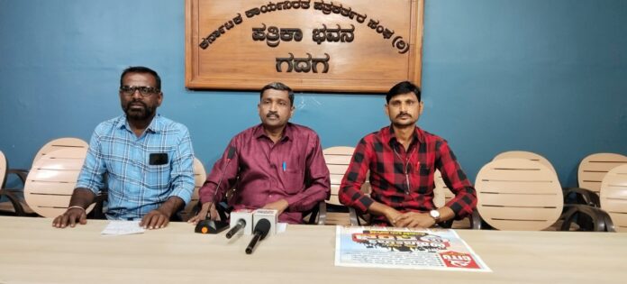 ಗದಗ ಪಟ್ಟಣದ ಪತ್ರಿಕಾ ಭವನದಲ್ಲಿ ಕಾರ್ಮಿಕ ವರ್ಗದ ಬೇಡಿಕೆಗಳನ್ನು ಈಡೇರಿಸುವಂತೆ ಒತ್ತಾಯಿಸಿ ಪತ್ರಿಕಾಗೋಷ್ಠಿಯಲ್ಲಿ ಅವರು ಮಾತನಾಡಿದರು.
