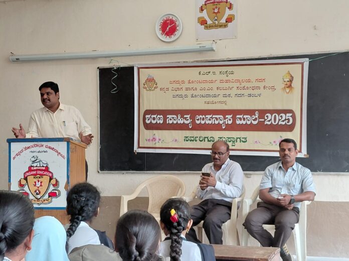“ಗದಗ ಜಿಲ್ಲೆ ಶರಣ ಸಾಹಿತ್ಯ ಚಳುವಳಿಯ ಪ್ರಮುಖ ಕೇಂದ್ರವಾಗಿ, ಧಾರ್ಮಿಕ ಸಾಮರಸ್ಯದಿಂದ ಬದುಕವ ಪ್ರದೇಶವಾಗಿ ಪ್ರಾಚೀನ ಕಾಲದಿಂದಲೂ ತನ್ನ ಮೌಲ್ಯವನ್ನು ಉಳಿಸಿಕೊಂಡು ಬಂದಿದೆ” ಎಂದು ವಿದ್ಯಾರ್ಥಿಗಳನ್ನು ಉಪದೇಶಿಸಿ ಉಪನ್ಯಾಸ ನೀಡಿದರು.