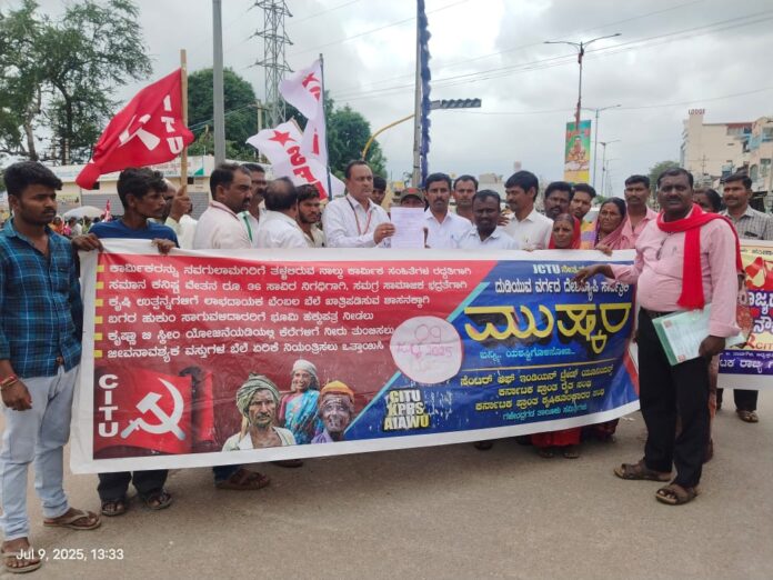 “ದೇಶದ ಹಲವು ರೈತ ಸಂಘಟನೆಗಳು, ವಿದ್ಯಾರ್ಥಿ ಯುವಜನ ಮಹಿಳಾ ಸಂಘಟನೆಗಳೂ ಈ ಮುಷ್ಕರವನ್ನು ಬೆಂಬಲಿಸಿ ಬೀದಿಗೆ ಇಳಿದಿವೆ. ಹಲವು ವಿರೋಧ ಪಕ್ಷಗಳೂ ಬೆಂಬಲ ಸೂಚಿಸಿವೆ. ಬಿಹಾರದಲ್ಲಿ ಇಂಡಿಯಾ ಕೂಟ ಇದೇ ಸಂದರ್ಭದಲ್ಲಿ ಬಂದ್ ಗೆ ಕರೆ ನೀಡಿದೆ. ಸಿಪಿಐಎಂ ಸಹಿತ ಎಡಪಕ್ಷಗಳು ಈ ಮಹತ್ವದ ಸಾರ್ವತ್ರಿಕ ಮುಷ್ಕರವನ್ನು ಪೂರ್ತಿಯಾಗಿ ಬೆಂಬಲಿಸುತ್ತಿವೆ. ಇದು ಕಾರ್ಮಿಕ ವರ್ಗದ ಮಾತ್ರ ಅಲ್ಲ, ಕಾರ್ಪೊರೇಟ್ ಬಂಡವಾಳಗಾರರ ಹೊರತಾದ ಇಡೀ ಜನ ಸಮೂಹದ ಹಿತಾಸಕ್ತಿ, ಭವಿಷ್ಯದ ಪ್ರಶ್ನೆಗಳನ್ನು ಅವಲಂಬಿಸಿದೆ. ನಿಮ್ಮೆಲ್ಲರ ಬೆಂಬಲವೂ ಕಾರ್ಮಿಕ ವರ್ಗದ ಈ ಮಹಾ ಮುಷ್ಕರಕ್ಕೆ ಇರಲಿ” ಎಂದು ಕರೆ ನೀಡಿದರು.