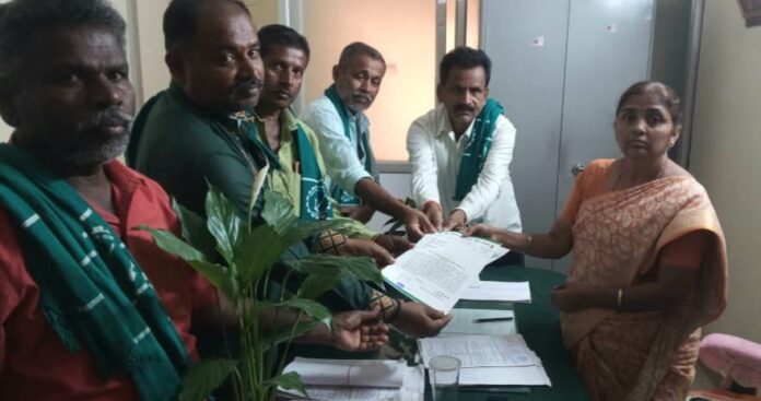 ಗ್ರೇಡ್ 2 ತಹಶೀಲ್ದಾರ್ ಶಶಿಕಲಾ ಅವರಿಗೆ ರೈತ ಸಂಘದ ಪದಾಧಿಕಾರಿಗಳು ಬೇಡಿಕೆ ಪತ್ರವನ್ನು ನೀಡಿದರು.