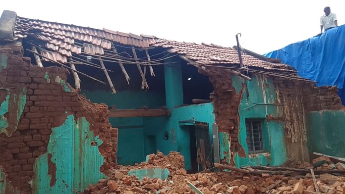 ಶಿವಮ್ಮ ಎಂಬುವವರಿಗೆ ಸಂಬಂಧಿಸಿದ ಕೆಂಪು ಹೆಂಚಿನ ವಾಸದ ಮನೆಯ ಗೋಡೆ ಸಂಜೆ ಸುರಿದ ಮಳೆಗೆ ಸಂಪೂರ್ಣ ಕುಸಿದಿದೆ. ಅದೃಷ್ಟವಶಾತ್ ಯಾವುದೇ ಜೀವ ಹಾನಿ ಸಂಭವಿಸಿಲ್ಲ. ಆದರೆ ಮನೆಯ ನಿತ್ಯ ಬಳಕೆಯ ಸಾಮಾನು ಸರಂಜಾಮು ಗೋಡೆಯ ಕೆಳಗೆ ಸಿಲುಕಿ ಸಾವಿರಾರು ರೂ ಬೆಲೆಯ ನಷ್ಟ ಸಂಭವಿಸಿದೆ.