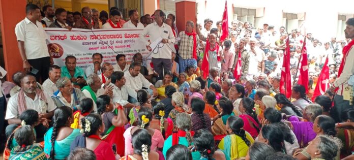 ಪ್ರಾಂತ ರೈತ ಸಂಘದ ಜಿಲ್ಲಾಧ್ಯಕ್ಷ ಚನ್ನಬಸವಯ್ಯ ಮಾತನಾಡಿ, “ರಾಜ್ಯದಲ್ಲಿ 14 ಲಕ್ಷಕ್ಕೂ ಅಧಿಕ ಮಂದಿ ಬಡ ರೈತರ ಬಗರ್ ಹುಕುಂ ಅರ್ಜಿ ಹಾಗೆಯೇ ಸರ್ಕಾರದ ಮುಂದಿದೆ. ಒಂದೂವರೆ ವರ್ಷ ಕಳೆದರೂ ಅಕ್ರಮ ಸಕ್ರಮ ಮಾಡುವ ಮಾತಿಲ್ಲ. ಚುನಾವಣಾ ಸಂದರ್ಭದಲ್ಲಿ ಕೊಟ್ಟ ಮಾತಿನಂತೆ ಸರ್ಕಾರ ನಡೆದುಕೊಂಡಿಲ್ಲ. ಈ ಹಿಂದೆ ಅರ್ಹ ಫಲಾನುಭವಿಗಳಿಗೆ ಹಕ್ಕು ಪತ್ರ ನೀಡದೆ ಉಳ್ಳವರಿಗೆ ಭೂಮಿ ಹಂಚಲಾಗಿದೆ. ಈ ಮಧ್ಯೆ ಮಹಾರಾಜರ ನೋಟಿಫಿಕೇಷೆನ್ ಬಗ್ಗೆ ಮಾತನಾಡುತ್ತಿದ್ದಾರೆ. ಹಾಗಾದರೆ ಉಳುವವನೇ ಭೂಮಿಯ ಒಡೆಯ ಕಾನೂನು ಎಲ್ಲಿ ಹೋಯ್ತು. ಅರಣ್ಯದಲ್ಲಿ ಕೃಷಿ ಮಾಡಲು ಬಳಸಿರುವ ಭೂಮಿ ಅನುಭವದಲ್ಲಿರುವ ರೈತರಿಗೆ ವಿತರಣೆ ಮಾಡಿ. ಈ ಬಗ್ಗೆ ಸಿಎಂ ಸಿದ್ದರಾಮಯ್ಯ ಅವರಿಗೆ ಪತ್ರ ಮೂಲಕ ಸಂದೇಶ ಕೊಡೋಣ” ಎಂದರು.