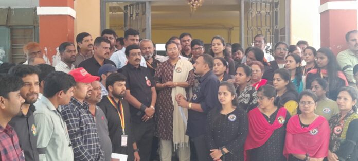 ಈ ಸಂದರ್ಭದಲ್ಲಿ ಭೂ ಮಾಪಕರ ಸಂಘದ ಅಧ್ಯಕ್ಷ ನಿಜಗುಣಪ್ಪ, ಗ್ರಾಮ ಲೆಕ್ಕಾಧಿಕಾರಿಗಳ ಸಂಘದ ಪ್ರಧಾನ ಕಾರ್ಯದರ್ಶಿ ಅಭಿಷೇಕ್ ಸೇರಿದಂತೆ ಎಲ್ಲಾ ಸಂಘದ ಪದಾಧಿಕಾರಿಗಳು, ಸದಸ್ಯರು ಕಪ್ಪು ಪಟ್ಟಿ ಧರಿಸಿ ಸರ್ಕಾರಕ್ಕೆ ಮನವಿ ಸಲ್ಲಿಸಿದರು.