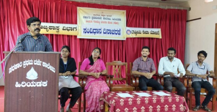 ಅವರು ಇಂದು ಹಿರಿಯಡಕ ಸರ್ಕಾರಿ ಪ್ರಥಮ ದರ್ಜೆ ಕಾಲೇಜಿನಲ್ಲಿ ಸಂವಿಧಾನ ದಿನಾಚರಣೆ ಕಾರ್ಯಕ್ರಮದ ಅಧ್ಯಕ್ಷತೆಯನ್ನು ವಹಿಸಿ ಮಾತನಾಡಿದರು.