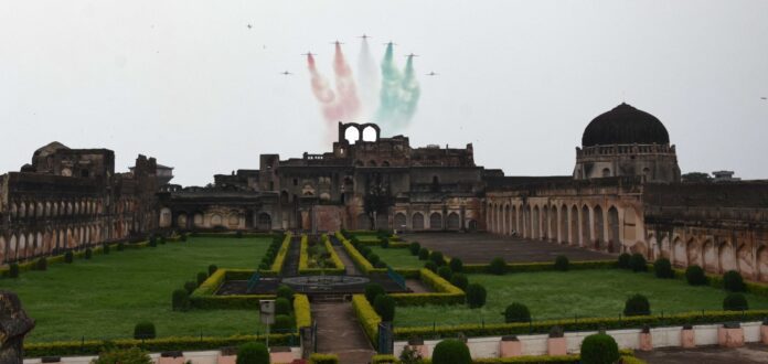 ಬೀದರ್ ಭಾರತೀಯ ವಾಯುಪಡೆ ತರಬೇತಿ ಕೇಂದ್ರಕ್ಕೆ ಸೇರಿದ ಒಂಬತ್ತು ಸೂರ್ಯಕಿರಣ ವಿಮಾನಗಳ ಏರೋಬ್ಯಾಟಿಕ್ ತಂಡದಿಂದ ಶನಿವಾರ ಬಹಮನಿ ಕೋಟೆ ಮೇಲೆ ಆಯೋಜಿಸಿದ ಏರ್ ಶೋ ನೋಡುಗರ ಕಣ್ಮನ ಸೆಳೆಯಿತು.
