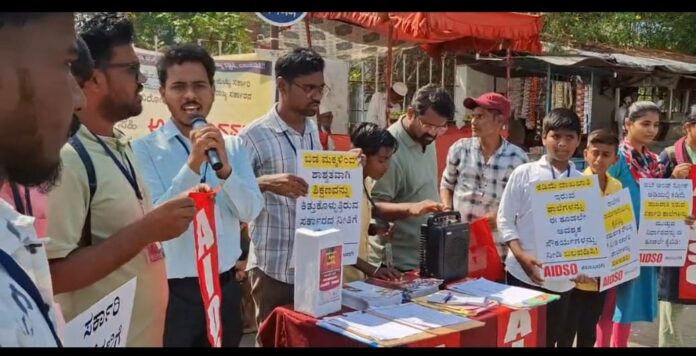 ಎಐಡಿಎಸ್ಓ ಜಿಲ್ಲಾ ಕಾರ್ಯದರ್ಶಿ ತುಳಜರಾಮ ಎನ್.ಕೆ ಮಾತನಾಡಿ, ʼರಾಜ್ಯದಲ್ಲಿ ಒಟ್ಟು 23,436 ಕಿರಿಯ ಪ್ರಾಥಮಿಕ ಶಾಲೆಗಳಲ್ಲಿ 10ಕ್ಕಿಂತ ಕಡಿಮೆ ದಾಖಲಾತಿ ಇರುವ 6 ಸಾವಿರ ಶಾಲೆಗಳಿವೆ, 7,821 ಏಕೋಪಾಧ್ಯಾಯ ಶಾಲೆಗಳಿವೆ. 3,500ಕ್ಕೂ ಹೆಚ್ಚು ಶಾಲೆಗಳಲ್ಲಿ ಬಳಕೆಗೆ ಯೋಗ್ಯ ಶೌಚಾಲಯ ವ್ಯವಸ್ಥೆ ಇಲ್ಲ. ಹಲವು ಶಾಲೆಗಳ ಕಟ್ಟಡಗಳು ವರ್ಷಗಳಿಂದ ದುರಸ್ತಿ ಕಾಣದೇ ಛಾವಣಿಗಳು ಸೋರುತ್ತಿವೆ. ಎಲ್ಲದಕ್ಕಿಂತ ಮುಖ್ಯವಾಗಿ ರಾಜ್ಯದ ಸರ್ಕಾರಿ ಶಾಲೆಗಳಲ್ಲಿ 59 ಸಾವಿರಕ್ಕೂ ಹೆಚ್ಚು ಶಿಕ್ಷಕರ ಹುದ್ದೆಗಳು ಖಾಲಿ ಇವೆʼ ಎಂದರು.