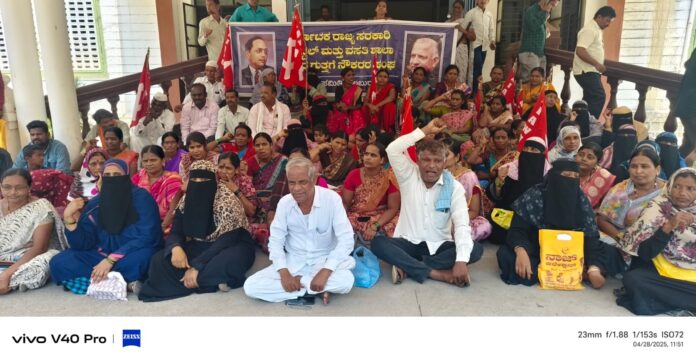 ಕೆಲಸದ ಸ್ಥಳದಲ್ಲಿ ಹೊರಗುತ್ತಿಗೆ ನೌಕರರನ್ನು ಶೋಷಿಸಲಾಗುತ್ತಿದೆ ಎಂದು ಆರೋಪಿಸಿ, ಕೂಡಲೇ ಈ ಬಗ್ಗೆ ಕ್ರಮ ಕೈಗೊಳ್ಳಬೇಕು ಎಂದು ಒತ್ತಾಯಿಸಿ ಕರ್ನಾಟಕ ರಾಜ್ಯ ಸರ್ಕಾರಿ ಹಾಸ್ಟೆಲ್ ಮತ್ತು ವಸತಿ ಶಾಲಾ ಹೊರಗುತ್ತಿಗೆ ನೌಕರರ ಸಂಘ ಜಿಲ್ಲಾ ಸಮಿತಿ ಕಲಬುರಗಿ ವತಿಯಿಂದ ಅಲ್ಪಸಂಖ್ಯಾತರ ಕಲ್ಯಾಣ ಇಲಾಖೆ ಕಚೇರಿ ಎದುರು ಪ್ರತಿಭಟನೆ ನಡೆಸಿ ಜಿಲ್ಲಾಧಿಕಾರಿಗೆ ಮನವಿ ಸಲ್ಲಿಸಲಾಯಿತು.