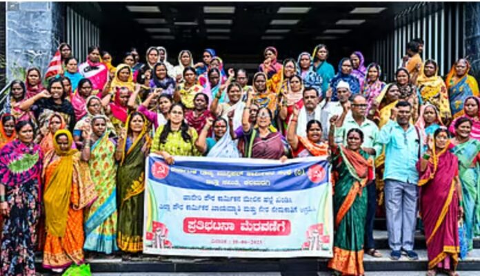 ಹಾವೇರಿ ನಗರಸಭೆಯ ಪೌರಕಾರ್ಮಿಕನ ಮೇಲೆ ಹಲ್ಲೆ ನಡೆಸಿದವರ ವಿರುದ್ಧ ಕಠಿಣ ಕ್ರಮ ಜರುಗಿಸಬೇಕು ಹಾಗೂ ಕಲಬುರಗಿ ಮಹಾನಗರ ಪಾಲಿಕೆಯಲ್ಲಿ ಗುತ್ತಿಗೆ ಆಧಾರದಲ್ಲಿ ಕಾರ್ಮಿಕರಿಂದ ಕೆಲಸ ಮಾಡಿಸಿಕೊಳ್ಳುತ್ತಿರುವುದನ್ನು ರದ್ದುಪಡಿಸಿ ನೇರ ಪಾವತಿಯಡಿ ತರಬೇಕು ಎಂದು ಆಗ್ರಹಿಸಿ ಕರ್ನಾಟಕ ರಾಜ್ಯ ಮುನ್ಸಿಪಲ್ ಕಾರ್ಮಿಕರ ಸಂಘದ ಸದಸ್ಯರು ಪಾಲಿಕೆ ಕಚೇರಿ ಎದುರು ಮಂಗಳವಾರ ಪ್ರತಿಭಟನೆ ನಡೆಸಿದರು.
