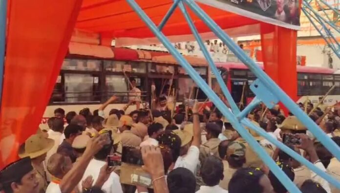 ಈ ವೇಳೆ ಮಧ್ಯಪ್ರವೇಶಿಸಿದ ಆರೆಸ್ಸೆಸ್ ಗಣವೇಷಧಾರಿಗಳು ಹಾಗೂ ಪೊಲೀಸರ ನಡುವೆ ವಾಗ್ವಾದ ತೀವ್ರಗೊಂಡಿದ್ದು, ಪೊಲೀಸರು ಗಣವೇಷಧಾರಿಗಳನ್ನು ವಶಕ್ಕೆ ಪಡೆದಿದ್ದಾರೆ ಎಂದು ಮೂಲಗಳು ತಿಳಿಸಿವೆ.