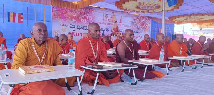 ಬೆಂಗಳೂರು ಮಹಾಬೋಧಿ ಸೊಸೈಟಿ ಪ್ರಧಾನ ಕಾರ್ಯದರ್ಶಿ ಭಂತೆ ಆನಂದ ಥೇರಾ ಮಾತನಾಡಿ, “ತ್ರಿಪಿಟಕ ಎಂದರೆ ಮೂರು ಬುಟ್ಟಿಗಳು. ವಿನಯ ಪೀಠಕ, ಸುತ್ತ ಪೀಠಕ ಹಾಗೂ ಅಭಿದಮ್ಮ ಪೀಠಕ ಎಂಬ ಈ ಮೂರು ಪುಸ್ತಕಗಳು ಬೌದ್ಧ ಧರ್ಮೀಯರ ಪವಿತ್ರ ಗ್ರಂಥಗಳಾಗಿವೆ. ಭಂತೆ ಇತಿಕಾ ಮಹಾಥೇರಾ ಬೆಂಗಳೂರು ಮಹಾಬೋಧಿ ಸೊಸೈಟಿ ಅಧ್ಯಕ್ಷರಾದ ಭಂತೆ ಕಶ್ಯಪ ಮಹಾಥೇರಾ ಧಮ್ಮ ಸಂದೇಶ” ನೀಡಿದರು.