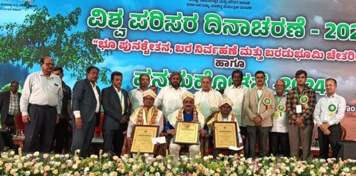 ಬೆಂಗಳೂರಿನ ಕಂಠೀರವ ಒಳಾಂಗಣ ಕ್ರೀಡಾಂಗಣದಲ್ಲಿ ಅರಣ್ಯ, ಜೀವಿಪರಿಸ್ಥಿತಿ ಮತ್ತು ಪರಿಸರ ಇಲಾಖೆ ಹಾಗೂ ಕರ್ನಾಟಕ ರಾಜ್ಯ ಮಾಲಿನ್ಯ ನಿಯಂತ್ರಣ ಮಂಡಳಿಯಿಂದ ನಡೆದ ‘ವಿಶ್ವ ಪರಿಸರ ದಿನಾಚರಣೆ ಹಾಗೂ ವನ ಮಹೋತ್ಸವ’ ಕಾರ್ಯಕ್ರಮದಲ್ಲಿ ಪ್ರಶಸ್ತಿ ನೀಡಲಾಯಿತು.