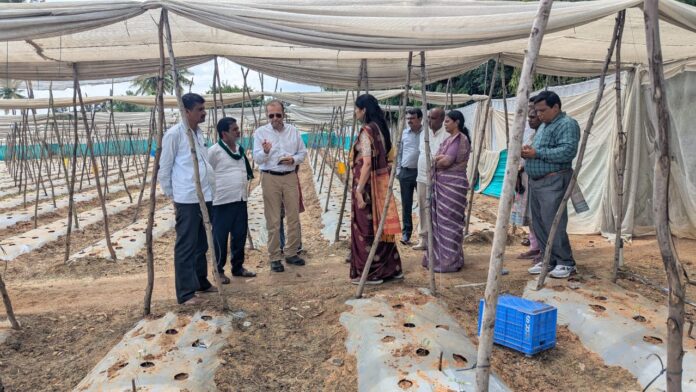 ಕೋಲಾರ ತಾಲೂಕಿನ ತುರಾಂಡಹಳ್ಳಿ ಗ್ರಾಮದ ಪ್ರಗತಿಪರ ರೈತ ಟಿ.ಎನ್ ರವಿ ಅವರ ತೋಟಕ್ಕೆ ಕೃಷಿ ಇಲಾಖೆಯ ಅಧಿಕಾರಿಗಳೊಂದಿಗೆ ಅಮೆರಿಕ ದೇಶದ ಕೃಷಿ ಅಧಿಕಾರಿಗಳು, ವಿಶ್ವ ಹಣಕಾಸು ಸಂಸ್ಥೆ, ಮತ್ತು ಎನ್.ಜಿ.ಒ ಸಂಸ್ಥೆಯ ಅಧಿಕಾರಿಗಳು ಭೇಟಿ ನೀಡಿ ಬೆಳೆಗಳು ಬೆಳೆಯುವಿಕೆ ಬಗ್ಗೆ ಮಾಹಿತಿ ಪಡೆದುಕೊಂಡರು.