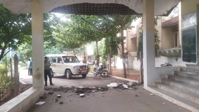 ನಗರದ ಶಿವ ಹಾಗೂ ಲಕ್ಷ್ಮೀ ಚಲನಚಿತ್ರ ಮಂದಿರಕ್ಕೆ ಹೋಗುವ ರಸ್ತೆಯಲ್ಲಿರುವ ತಹಶೀಲ್ದಾರ ಕಚೇರಿ ಮೇಲ್ಫಾವಣಿ ಕುಸಿದು ಬಿದ್ದು ಅಧಿಕಾರಿಯ ಕಾರು ಕೂಡ ಜಖಂ ಅಗುವುದು ಸ್ವಲ್ಪದರಲ್ಲೇ ತಪ್ಪಿದೆ ಎಂದು ಪ್ರತ್ಯಕ್ಷದರ್ಶಿಗಳು ಮಾಹಿತಿ ನೀಡಿದ್ದಾರೆ.