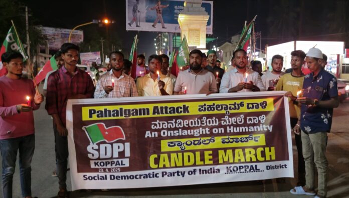ಜಮ್ಮು ಮತ್ತು ಕಾಶ್ಮೀರದ ಪಹಲ್ಗಾಮ್ನಲ್ಲಿ ನಡೆದ ಭಯೋತ್ಪಾದಕ ದಾಳಿಯನ್ನು ಖಂಡಿಸಿ ಸೋಷಿಯಲ್ ಡೆಮಾಕ್ರಟಿಕ್ ಪಾರ್ಟಿ ಆಫ್ ಇಂಡಿಯಾ (ಎಸ್ಡಿಪಿಐ) ಸದಸ್ಯರು ಪ್ರತಿಭಟನೆ ನಡೆಸಿದರು.