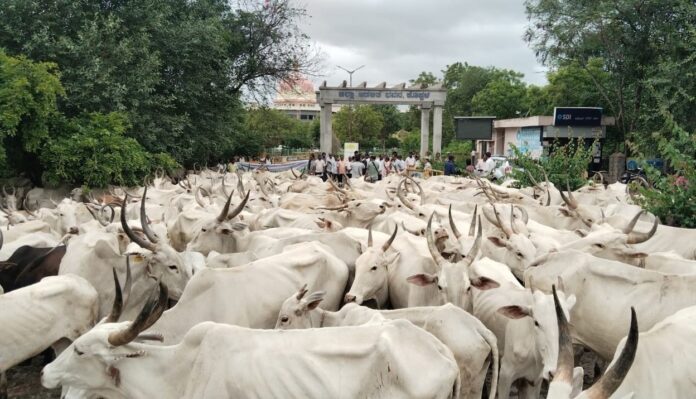 ಜಿಲ್ಲಾ ಕೇಂದ್ರದ ಸಮೀಪದಲ್ಲಿರುವ ಎಮ್ಎಸ್ಪಿಎಲ್ ಉಕ್ಕಿನ ಕಾರ್ಖಾನೆ ವಿಸ್ತರಣೆ ಚುರುಕಾಗಿ ನಡೆದಿದ್ದು, 44.35 ಕೆರೆಯ ಜಾಗ ಅನಧಿಕೃತವಾಗಿ ಒತ್ತುವರಿ ಮಾಡಲಾಗಿದೆ. ನ್ಯಾಯಾಲಯದ ಆದೇಶದಂತೆ ಕೆರೆಯನ್ನು ಜಾನುವಾರುಗಳಿಗೆ ಮುಕ್ತಗೊಳಿಸುವಂತೆ ಜಾನುವಾರುಗಳನ್ನು ಜಿಲ್ಲಾಧಿಕಾರಿ ಕಚೇರಿ ಮುಂದೆ ಜಮಾಯಿಸಿ ಶಾಂತಿಯುತ ಪ್ರತಿಭಟನೆ ನಡೆಸಿದರು.