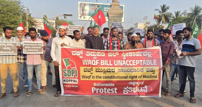 ಕೇಂದ್ರ ಸರ್ಕಾರದ ವಕ್ಫ್ ಮಸೂದೆ ವಿರೋಧಿಸಿ ಕೊಪ್ಪಳ ನಗರದ ಅಶೋಕ ವೃತ್ತದಲ್ಲಿ ಹಾಗೂ ಗಂಗಾವತಿಯ ಶ್ರೀಕೃಷ್ಣದೇವರಾಯ ವೃತ್ತದಲ್ಲಿ ಮಸೂದೆಯ ಪ್ರತಿ ಹರಿದು ಹಾಕುವುದರ ಮೂಲಕ ಸೋಶಿಯಲ್ ಡೆಮೊಕ್ರಟಿಕ್ ಪಾರ್ಟಿ ಆಫ್ ಇಂಡಿಯಾ (ಎಸ್ಡಿಪಿಐ) ಪ್ರತಿಭಟನೆ ನಡೆಸಿತು. ಗಂಗಾವತಿಯಲ್ಲಿ ಪ್ರತಿಭಟನಾಕಾರರನ್ನು ಕೆಲವು ನಿಮಿಷ ಬಂಧಿಸಿ ಬಳಿಕ ಬಿಡುಗಡೆ ಮಾಡಲಾಯಿತು.