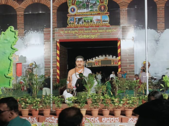 ಕಾರ್ಯಕ್ರಮದ ತಯಾರಿ ಆಗಿದೆಯೇ? ಇನ್ನೂ ಹಲವೆಡೆ ಅನಧಿಕೃತ ಬ್ಯಾನರ್ ಗಳನ್ನೂ ಹಾಕುತ್ತಿದ್ದಾರೆ. ಇನ್ನೂ ಸಿದ್ಧತೆ ಕಾರ್ಯ ಪೂರ್ಣಗೊಂಡಿಲ್ಲ, ಕರೆಂಟ್ , ಹಾಕಬೇಕಿದ್ದ ಬ್ಯಾನರ್ ಇನ್ನು ಹಾಕಿಲ್ಲ. ಸಮ್ಮೇಳನಕ್ಕೆ ಹೋಗುವ ಮುಖ್ಯ ದಾರಿಯಲ್ಲಿ ಕನ್ನಡ ಬಾವುಟ ಅಲಂಕಾರಗೊಂಡಿದೆ. ಮುಖ್ಯ ವೇದಿಕೆಯ ಮುಂಬಾಗಿಲಿನಲ್ಲಿ ಕನ್ನಡಾಂಬೆ ಮತ್ತು ಬಸವಣ್ಣನವರ ಪ್ರತಿಮೆ ಇದೆ. ಮುಂಬಾಗಿಲಲ್ಲಿ ಮುಂದೆ ಯಕ್ಷ ಕವಿ ಕೆಂಪಣ್ಣ ಗೌಡ ಮತ್ತು ಉಭಯ ಕವಿತಾ ವಿಶಾರದ ಕ್ಷಡಕ್ಷರ ದೇವ ಎಂದು ಮಹಾದ್ವಾರಕ್ಕೆ ಹೆಸರನ್ನು ಹಾಕಿದ್ದಾರೆ. ಅಕ್ಕದ್ದಲ್ಲೇ ಕೆ ಆರ್ ಎಸ್ ಅಣೆಕಟ್ಟು ಚಿತ್ರ ಕಾಣಿಸುತ್ತದೆ.