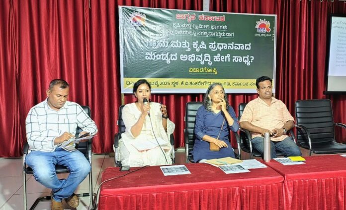 ಮಂಡ್ಯ ನಗರದ ಕೆ ವಿ ಶಂಕರೇಗೌಡ ಸಭಾಂಗಣದಲ್ಲಿ ನಡೆದ, ʼಗ್ರಾಮೀಣ ಮತ್ತು ಕೃಷಿ ಪ್ರಧಾನವಾದ ಮಂಡ್ಯದ ಅಭಿವೃದ್ಧಿ ಹೇಗೆ ಸಾಧ್ಯʼ ಎಂಬ ವಿಚಾರಗೋಷ್ಠಿಯಲ್ಲಿ ಮಾತನಾಡಿದ ಅವರು, “ನಾವು ಸುಸ್ಥಿರವಾದ ಕೃಷಿ ಭೂಮಿಯನ್ನು ಹೊಂದುವುದು ಮುಖ್ಯ. ಸುಸ್ಥಿರ ಭೂಮಿಯನ್ನು ಹೊಂದುವ ಬಗ್ಗೆ ಗಮನ ಹರಿಸಬೇಕು. ಆದರೆ, ರಾಜ್ಯ ಸರ್ಕಾರ ಮಾಡುತ್ತಿರುವ ರೈತ ವಿರೋಧಿ ನೀತಿಯನ್ನು ಖಂಡಿಸಿ ರೈತರು ಸುಸ್ಥಿರ ಕೃಷಿ ಭೂಮಿಯನ್ನು ಕಾಪಾಡಿಕೊಳ್ಳಬೇಕು” ಎಂದರು.