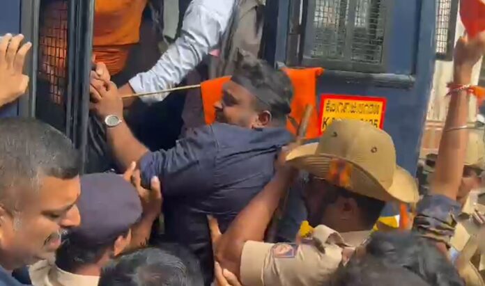 ಕಾಲೇಜು ವಿದ್ಯಾರ್ಥಿಗಳನ್ನು ಹೊರತು ಪಡಿಸಿ ಪ್ರತಿಭಟನೆಗೆ ಬಂದು ವಿರೋಧಿ ಘೋಷಣೆ ಕೂಗಿದ 10ಕ್ಕೂ ಹೆಚ್ಚು ಕಾರ್ಯಕರ್ತರನ್ನು ಪೊಲೀಸರು ವಶಕ್ಕೆ ಪಡೆದಿದ್ದಾರೆ. ಈ ನಡುವೆಯೇ ವಿ ವಿ ಕಾಲೇಜಿನ ರವೀಂದ್ರ ಕಲಾಭವನದಲ್ಲಿ ಉಪನ್ಯಾಸ ಕಾರ್ಯಕ್ರಮ ಆರಂಭವಾಗಿದೆ.