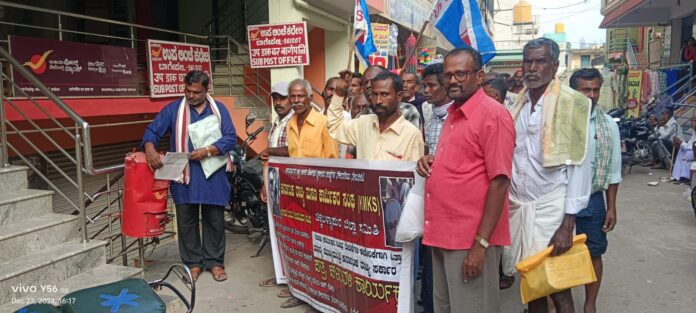 ಮಸಣ ಕಾರ್ಮಿಕರ ವಿವಿಧ ಬೇಡಿಕೆಗಳ ಈಡೇರಿಕೆಗೆ ಒತ್ತಾಯಿಸಿ ಮಸಣ ಕಾರ್ಮಿಕರ ಸಂಘದ ಕಾರ್ಮಿಕರು ಮುಖ್ಯಮಂತ್ರಿ ಸಿದ್ದರಾಮಯ್ಯಗೆ ಪತ್ರ ಬರೆಯುವ ಮೂಲಕ ಸೋಮವಾರ ಪತ್ರ ಚಳವಳಿ ನಡೆಸಿದರು.