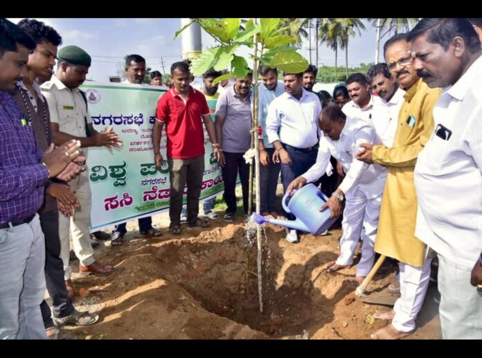 ಚಾಮರಾಜನಗರದ ಸೋಮವಾರಪೇಟೆಯ ಸ್ವಾಗತ ಕಮಾನಿನ ಬಳಿ ಜಿಲ್ಲಾಡಳಿತ, ಜಿಲ್ಲಾ ಪಂಚಾಯತ್, ನಗರಸಭೆ, ಅರಣ್ಯ ಇಲಾಖೆ, ಪರಿಸರ ಇಲಾಖೆ ಹಾಗೂ ನಗರದ ವಿವಿಧ ಸಂಘ ಸಂಸ್ಥೆಗಳ ಸಹಯೋಗದಲ್ಲಿ ವಿಶ್ವ ಪರಿಸರ ದಿನದ ಅಂಗವಾಗಿ ಆಯೋಜಿಸಲಾಗಿದ್ದ ಸಸಿ ನೆಡುವ ಕಾರ್ಯದಲ್ಲಿ ಶಾಸಕರಾದ ಸಿ. ಪುಟ್ಟರಂಗಶೆಟ್ಟಿ, ಜಿಲ್ಲಾಧಿಕಾರಿ ಶಿಲ್ಪಾ ನಾಗ್, ಜಿಲ್ಲಾ ಪೊಲೀಸ್ ವರಿಷ್ಠಾಧಿಕಾರಿ ಡಾ. ಬಿ.ಟಿ. ಕವಿತಾ, ಚೂಡಾ ಅಧ್ಯಕ್ಷ ಮಹಮ್ಮದ್ ಅಸ್ಗರ್ ಮುನ್ನಾ ಅವರು ಗಿಡ ನೆಟ್ಟು ನೀರೆರೆಯುವ ಮೂಲಕ ಚಾಲನೆ ನೀಡಿದರು.