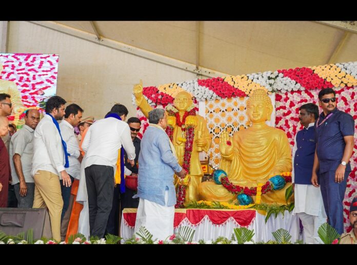 ಮುಖ್ಯಮಂತ್ರಿಗಳಾದ ಸಿದ್ದರಾಮಯ್ಯ ಅವರ ನೇತೃತ್ವದ ಸರ್ಕಾರವು ಬುದ್ಧ, ಬಸವ, ಅಂಬೇಡ್ಕರ್ ಅವರ ಚಿಂತನೆಗಳೊಂದಿಗೆ ಸಾಗುತ್ತಿದೆ. ಜನರು ಆರ್ಶೀವದಿಸಿ ಕಾಂಗ್ರೆಸ್ ಪಕ್ಷಕ್ಕೆ ಬಹುಮತ ನೀಡಿದ್ದಾರೆ. ಅದರಂತೆ ಸರ್ಕಾರವು ಅನೇಕ ಅಭಿವೃದ್ಧಿ ಯೋಜನೆಗಳನ್ನು ಜಾರಿ ಮಾಡುತ್ತಿದೆ ಎಂದರು.