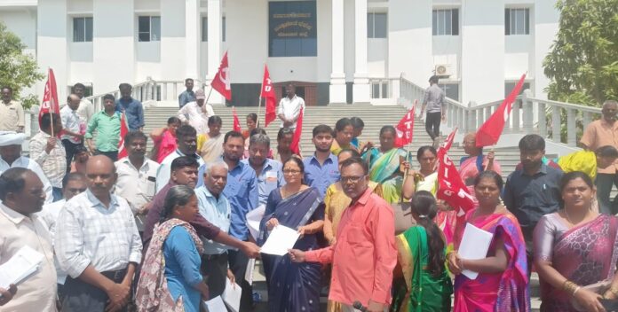 ಕೋಲಾರ: ರಾಜ್ಯ ಸರ್ಕಾರವು ಜನವರಿ 23 ರಂದು ಪ್ರಕಟಿಸಿರುವ ನಾಲ್ಕು ಕಾರ್ಮಿಕ ಸಂಹಿತೆಗಳ ಕರಡು ನಿಯಮಾವಳಿಗೆ ಸಿಐಟಿಯು ನೇತೃತ್ವದಲ್ಲಿ ಮಂಗಳವಾರ ಜಿಲ್ಲಾಧಿಕಾರಿ ಕಛೇರಿ ಮುಂದೆ ಪ್ರತಿಭಟನೆ ನಡೆಸಿ ಕಾರ್ಮಿಕ ಸಂಘಟನೆಗಳಿಂದ ಕಾರ್ಮಿಕ ಅಧಿಕಾರಿ ವರಲಕ್ಷ್ಮೀ ಮೂಲಕ ಆಯುಕ್ತರಿಗೆ ಆಕ್ಷೇಪಣೆಗಳನ್ನು ಸಲ್ಲಿಸಿದರು.