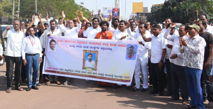 ಭಾಲ್ಕಿ ತಾಲ್ಲೂಕಿನ ಕಟ್ಟಿ ತೂಗಾಂವ್ ಗ್ರಾಮದ ಯುವ ಗುತ್ತಿಗೆದಾರ ಸಚಿನ್ ಪಾಂಚಾಳ್ ನಿಗೂಢ ಸಾವಿನ ಬಗ್ಗೆ ತನಿಖೆಗೆ ಆಗ್ರಹಿಸಿ ನಗರದಲ್ಲಿ ಮಂಗಳವಾರ ಅಖಿಲ ಕರ್ನಾಟಕ ವಿಶ್ವಕರ್ಮ ಮಹಾಸಭಾ ಜಿಲ್ಲಾ ಘಟಕದಿಂದ ಪ್ರತಿಭಟನೆ ನಡೆಸಲಾಯಿತು.