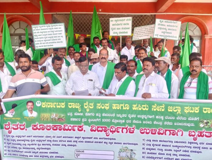 ಶರಣಪ್ಪ ಮುರುಳಿ ಮಾತನಾಡಿ, “ರೈತರು ಬೆಳದ ಎಲ್ಲ ಬೆಳೆಗಳಿಗೆ ಕನಿಷ್ಠ ಬೆಂಬಲ ಬೆಲೆಯನ್ನು ಕಾನೂನುಬದ್ಧಗೊಳಿಸಬೇಕು. ಸ್ವಾಮಿನಾಥನ್ ಸೂತ್ರದ ಪ್ರಕಾರ ಖರೀದಿ ಬೆಲೆಗಳನ್ನು ನಿಗದಿಪಡಿಸಬೇಕೆಂದು ಹಲವು ಬಾರಿ ಸರ್ಕಾರದ ಗಮನಕ್ಕೆ ತಂದರೂ ರೈತರ ಬೇಡಿಕೆ ಈಡೇರಿಸಲು ಆಗಿಲ್ಲ” ಎಂದರು.