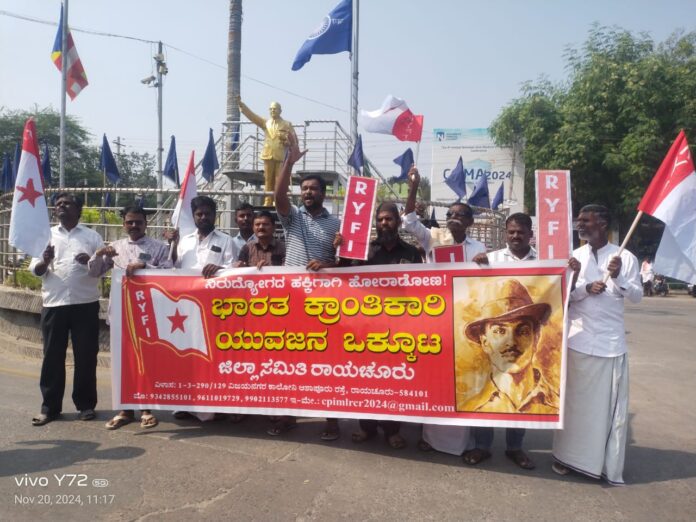 ರಾಯಚೂರು ಜಿಲ್ಲೆಯ ಸಿಂಧನೂರು ಸರ್ಕಾರಿ ಪ್ರಥಮ ದರ್ಜೆ ಕಾಲೇಜಿನಲ್ಲಿ ನಡೆದ ಪಿಡಿಓ ಪರೀಕ್ಷೆ ನಿರ್ವಹಣೆ ಮಾಡುವಲ್ಲಿ ಲೋಪ ಎಸಗಿದ ಅಧಿಕಾರಿಗಳ ವಿರುದ್ಧ ಕ್ರಮ ಕೈಗೊಳ್ಳಬೇಕು ಎಂದು ಭಾರತ ಕ್ರಾಂತಿಕಾರಿ ಯೋಜನೆ ಒಕ್ಕೂಟ (RYFI) ವತಿಯಿಂದ ಪ್ರತಿಭಟನೆ ನಡೆಸಲಾಯಿತು.
