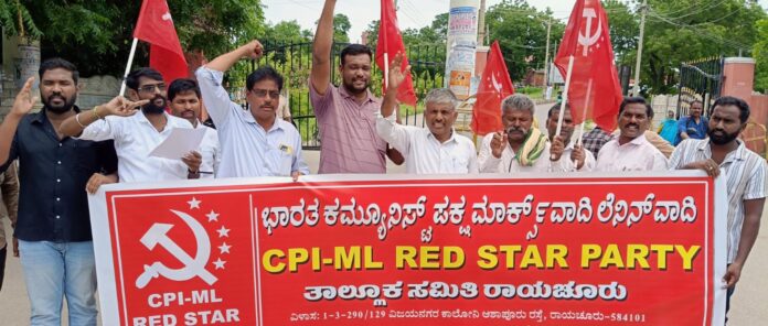 ರಾಯಚೂರು ನಗರದ ಜಿಲ್ಲಾಧಿಕಾರಿ ಕಚೇರಿ ಮುಂದೆ ಗುರುವಾರ ಭಾರತ ಕಮ್ಯುನಿಸ್ಟ್ ಪಕ್ಷದ ಜಿಲ್ಲಾ ಘಟಕದ ಪದಾಧಿಕಾರಿಗಳು ಪ್ರತಿಭಟನೆ ನಡೆಸಿ ಆನಂತರ ಜಿಲ್ಲಾಡಳಿತದ ಮೂಲಕ ರಾಷ್ಟ್ರಪತಿಗೆ ಮನವಿ ಸಲ್ಲಿಸಿದರು.