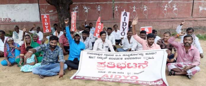ನಗರದ ಟಿಪ್ಪುಸುಲ್ತಾನ್ ಉದ್ಯಾನದಲ್ಲಿ ಎಐಡಿವೈಒ ಜಿಲ್ಲಾ ಘಟಕದ ಪದಾಧಿಕಾರಿಗಳು ಹಾಗೂ ಗ್ರಾಮಸ್ಥರು ಪ್ರತಿಭಟನೆ ನಡೆಸಿ ಜಿಲ್ಲಾಡಳಿತಕ್ಕೆ ಮನವಿ ಸಲ್ಲಿಸಿದರು. ಮಮದಾಪುರ ಗ್ರಾಮದಲ್ಲಿ ಸುಟ್ಟು ಹೋಗಿರುವ ವಿದ್ಯುತ್ ಪರಿವರ್ತಕವನ್ನು ಬದಲಿಸಿ ಕೂಡಲೇ 100 ಕೆ.ವಿ ಸಾಮರ್ಥ್ಯದ ಹೊಸ ವಿದ್ಯುತ್ ಪರಿವರ್ತಕವನ್ನು ಅಳವಡಿಸಬೇಕು ಎಂದು ಆಗ್ರಹಿಸಿದರು.