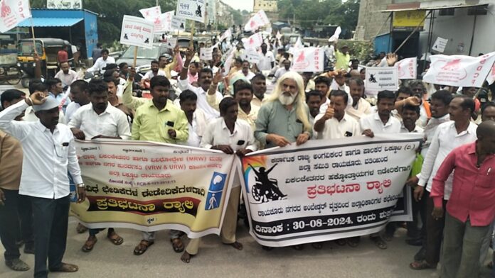 ಜಿಲ್ಲೆಯ ಎಲ್ಲ ವಿಶೇಷ ಚೇತನರಿಗೆ ನಿವೇಶನ ಮನೆಗಳನ್ನು ನೀಡಬೇಕು ಎಂಬುದು ಸೇರಿದಂತೆ ವಿವಿಧ ಬೇಡಿಕೆ ಈಡೇರಿಕೆಗೆ ಆಗ್ರಹಿಸಿ ಕರ್ನಾಟಕ ರಾಜ್ಯ ಅಂಗವಿಕಲರ ಹಾಗೂ ಪಾಲಕರ ಒಕ್ಕೂಟದಿಂದ ರಾಯಚೂರು ನಗರದಲ್ಲಿ ಬೃಹತ್ ರ್ಯಾಲಿ ನಡೆಸಿದರು.