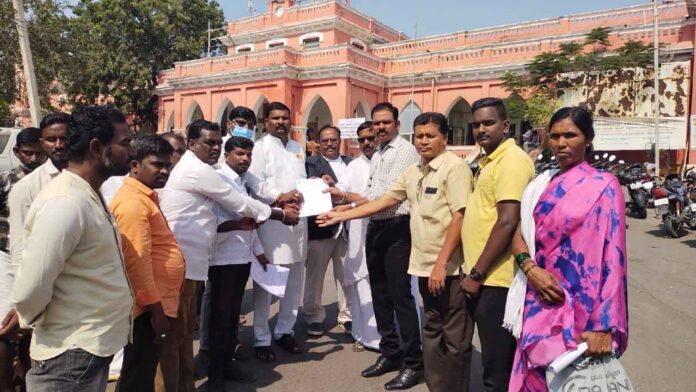 ರಾಯಚೂರು ಜಿಲ್ಲಾಧಿಕಾರಿ ಕಚೇರಿ ಎದುರು ಪ್ರತಿಭಟನೆ ನಡೆಸಿರುವ ಸಂಘಟನೆಯ ಕಾರ್ಯಕರ್ತರು, ಜಿಲ್ಲಾಧಿಕಾರಿಗೆ ಹಕ್ಕೊತ್ತಾಯ ಪತ್ರ ಸಲ್ಲಿಸಿದ್ದಾರೆ.