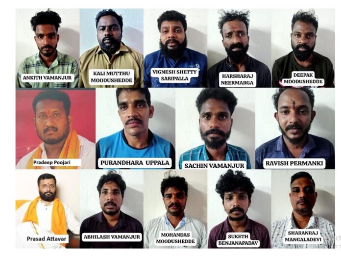 ಉಳಿದ 13 ಮಂದಿ ಬಂಧಿತರನ್ನು ಹರ್ಷರಾಜ್, ಮೋಹನ್ ದಾಸ್, ಪುರಂದರ, ಸಚಿನ್, ರವೀಶ್, ಸುಕೇತ್, ಅಂಕಿತ್, ಕಾಳಿ ಮುತ್ತು, ಅಭಿಲಾಷ್, ದೀಪಕ್, ವಿಘ್ನೇಶ್, ಶರಣ್ ರಾಜ್, ಪ್ರದೀಪ್ ಪೂಜಾರಿ ಎಂದು ಗುರುತಿಸಲಾಗಿದೆ.