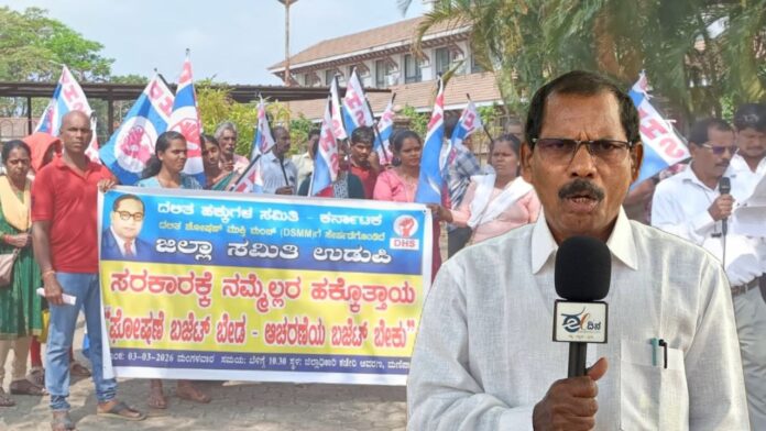 “ಘೋಷಣೆ ಬಜೆಟ್ ಬೇಡ – ಆಚರಣೆಯ ಬಜೆಟ್ ಬೇಕು” ಎಂಬ ಧ್ಯೇಯವಾಕ್ಯದಡಿ ದಲಿತ ಹಕ್ಕುಗಳ ಸಮಿತಿ, ಉಡುಪಿ ಜಿಲ್ಲಾ ಘಟಕದ ವತಿಯಿಂದ ಇಂದು ಉಡುಪಿ ಜಿಲ್ಲಾಧಿಕಾರಿ ಕಚೇರಿ ಮುಂಭಾಗದಲ್ಲಿ ಪ್ರತಿಭಟನಾ ಧರಣಿ ನಡೆಯಿತು. ರಾಜ್ಯಾದ್ಯಂತ ಸಮಿತಿಯ ರಾಜ್ಯ ಸಮಿತಿ ಕರೆ ನೀಡಿದಂತೆ ಜಿಲ್ಲಾ ಮತ್ತು ತಾಲೂಕು ಕೇಂದ್ರಗಳಲ್ಲಿ ಹಕ್ಕೊತ್ತಾಯ ಪ್ರತಿಭಟನೆ ನಡೆಸಿ ತಹಶೀಲ್ದಾರ್ ಹಾಗೂ ಜಿಲ್ಲಾಧಿಕಾರಿಗಳ ಮೂಲಕ ರಾಜ್ಯ ಸರ್ಕಾರಕ್ಕೆ ಮನವಿ ಸಲ್ಲಿಸಲಾಯಿತು.