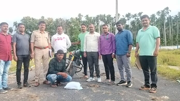 ಖಚಿತ ವರ್ತಮಾನದ ಮೇರೆಗೆ ಜು.1 ರಂದು ಪೊಲೀಸರು ಕಾರ್ಯಾಚರಣೆ ನಡೆಸಿದ್ದಾರೆ. ಬಂಧಿತ ಆರೋಪಿಯಿಂದ 25 ಸಾವಿರ ರೂ. ಮೌಲ್ಯದ ಒಣ ಗಾಂಜಾ ಹಾಗೂ ರಾಯಲ್ ಎನ್ ಫೀಲ್ಡ್ ಬೈಕ್ ನ್ನು ವಶಕ್ಕೆ ಪಡೆದುಕೊಂಡಿದ್ದಾರೆ.