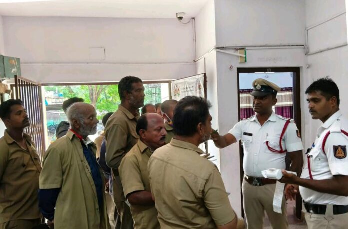ಶಿವಮೊಗ್ಗ ಪಶ್ಚಿಮ ಸಂಚಾರಿ ಪೊಲೀಸ್ ಠಾಣೆಯ ಪಿಎಸ್ಐ ತಿರುಮಲೇಶ್ ರವರು, ಮತ್ತು ಮೋಹನ್ ಎ.ಎಸ್.ಐ. ಮತ್ತು ಸಿಬ್ಬಂದಿಯೊಂದಿಗೆ ಕೆ.ಎಸ್.ಆರ್.ಟಿ.ಸಿ ಬಸ್ ಸ್ಟಾಂಡ್ ಮುಂಭಾಗದ ಆಟೋ ನಿಲ್ದಾಣದಲ್ಲಿನ ಆಟೋಗಳ ದಾಖಲಾತಿಗಳನ್ನು ಪರಿಶೀಲಿಸಿದ್ದಾರೆ,