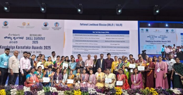 ರಾಷ್ಟ್ರೀಯ ಜೀವನೋಪಾಯ ಅಭಿಯಾನ (NRLM & NULM) ಅಡಿಯಲ್ಲಿ ಅತ್ಯುತ್ತಮ ಸಾಧನೆಗೈದ ರಾಜ್ಯದ 8 ಜಿಲ್ಲೆಗಳ ಸ್ವ-ಸಹಾಯ ಗುಂಪುಗಳ ಸದಸ್ಯರಿಗೆ ಬೆಂಗಳೂರು ʼಕೌಶಲ್ಯ ಶೃಂಗಸಭೆ-2025ʼ ಪ್ರಶಸ್ತಿ ನೀಡಿ ಗೌರವಿಸಲಾಯಿತು.