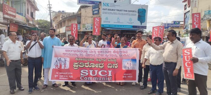 ಬಾಂಗ್ಲಾ ಹಾಗೂ ಭಾರತದಲ್ಲಿನ ಕೋಮುವಾದ ಖಂಡಿಸಿ ಎಸ್ಯುಸಿಐ ಕಮ್ಯುನಿಸ್ಟ್ ಪಕ್ಷದ ಕಾರ್ಯಕರ್ತರು ನಗರದ ಸರ್ದಾರ್ ವಲ್ಲಭಬಾಯಿ ಪಟೇಲ್ ವೃತ್ತದಲ್ಲಿ ಪ್ರತಿಭಟನೆ ನಡೆಸಿದರು.