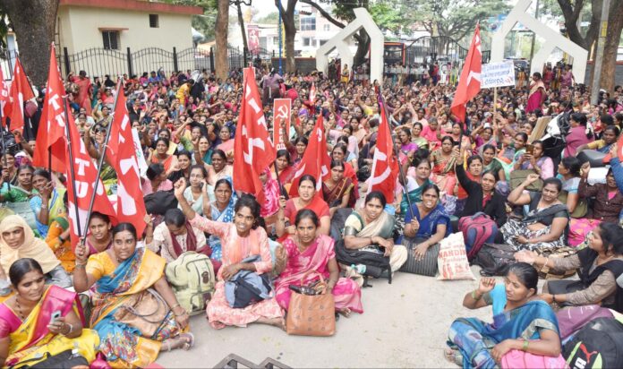 “ಶ್ರಮ ಶಕ್ತಿ ನೀತಿ” 2025 ದುಡಿವ ಜನರಿಗೆ ದ್ರೋಹ ಬಗೆಯುವ 4 ಕಾರ್ಮಿಕ ಕಾನೂನುಗಳನು ರದ್ದುಮಾಡಬೆಕು. ದುಡಿವ ಜನರಿಗೆ ಶಾಸನ ಬದ್ದ ಸವಲತ್ತುಗಳನ್ನು ನೀಡಬೇಕೆಂದು ಅಗ್ರಹಿಸಿ ಎರಡನೇ ದಿನಕ್ಕೆ ಕಾಲಟ್ಟ ಅಂಗನವಾಡಿ, ಬಿಸಿಯೂಟ, ಆಶಾ ನೌಕರರ ಅಹೋರಾತ್ರಿ ಧರಣೆ.